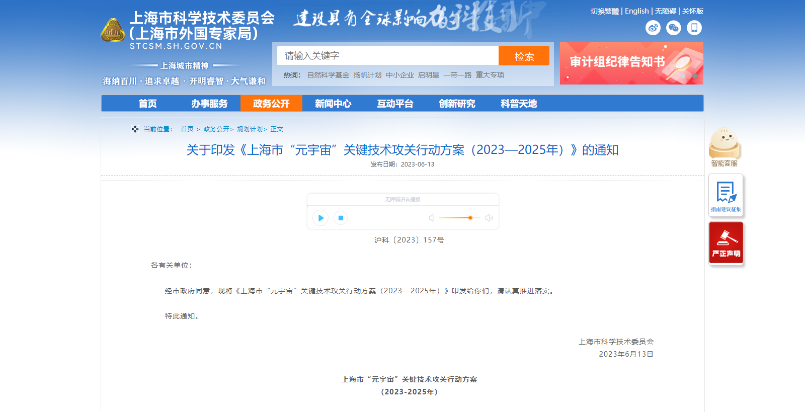 經(jīng)市政府同意,現(xiàn)將《上海市“元宇宙”關(guān)鍵技術(shù)攻關(guān)行動方案(2023—2025年)》印發(fā)給你們,請認(rèn)真推進(jìn)落實。