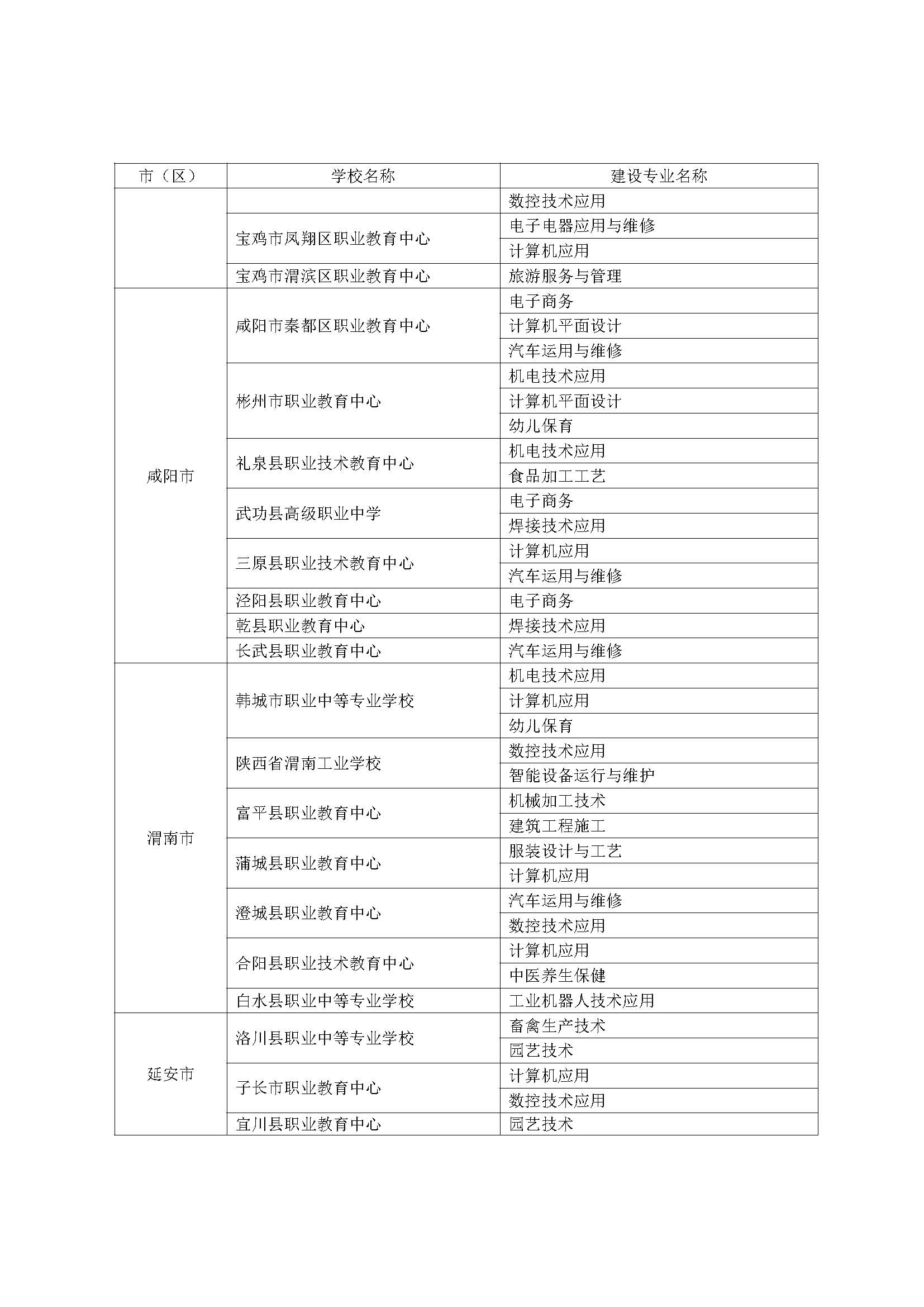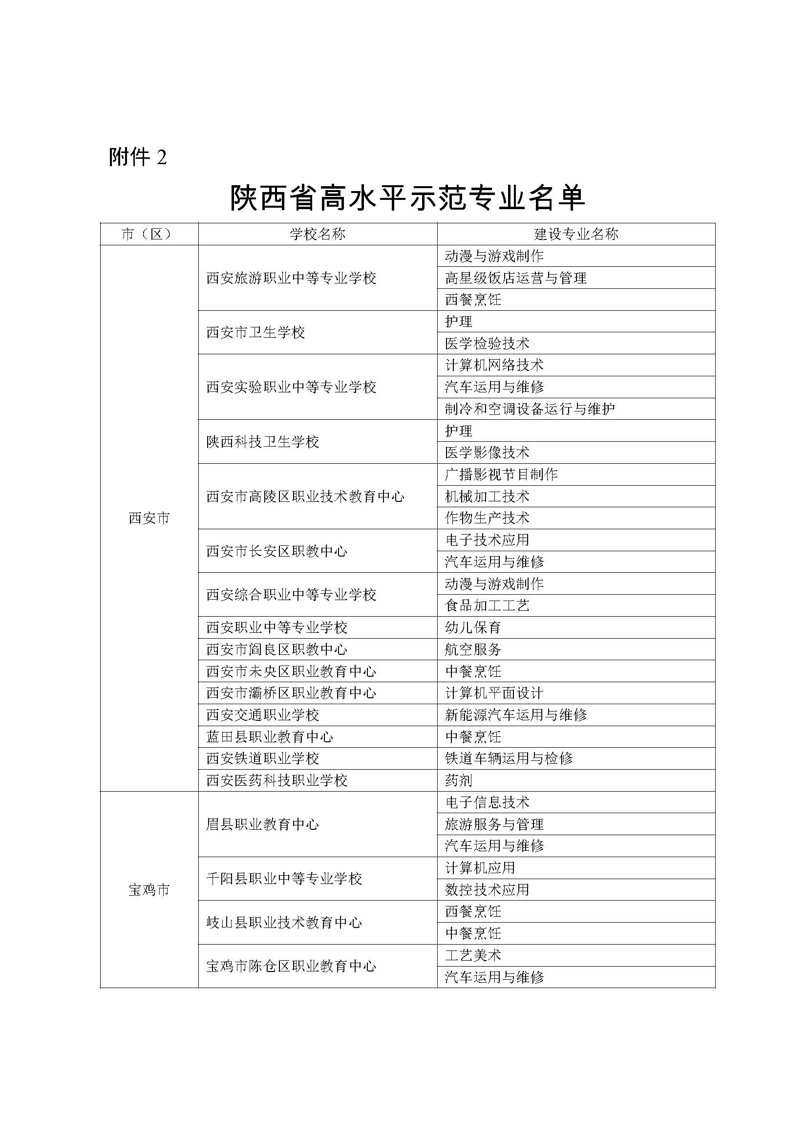 根據(jù)《陜西省教育廳 陜西省財政廳關(guān)于印發(fā)〈陜西省中等職業(yè)教育優(yōu)質(zhì)學校和優(yōu)質(zhì)專業(yè)建設(shè)計劃實施方案〉的通知》(陜教〔2023〕10號,以下簡稱《實施方案》),經(jīng)學校申報、市級推薦、形式審查、專家評審和結(jié)果公示等程序,現(xiàn)將50所陜西省高水平示范性中等職業(yè)學校和150個示范專業(yè)建設(shè)項目(以下簡稱“雙示范”建設(shè)項目)名單予以公布,并就做好有關(guān)工作通知如下。