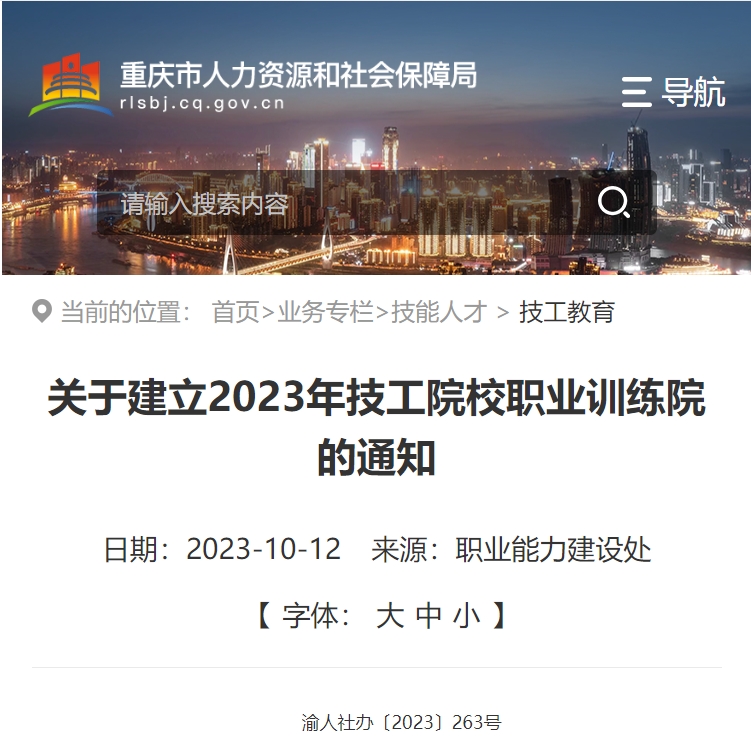 重慶市人力資源和社會保障局辦公室官方發(fā)布關(guān)于建立2023年技工院校職業(yè)訓練院的通知,決定建立重慶工貿(mào)技師學院、重慶能源工業(yè)技師學院、重慶交通技師學院等3個技工院校職業(yè)訓練院,項目建設(shè)周期為2年,按規(guī)定分別給予200萬元、150萬元、150萬元的補助資金。