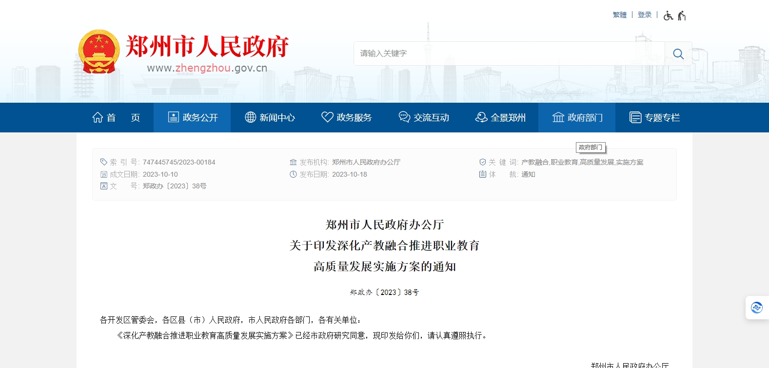10月18日,鄭州市人民政府辦公廳印發(fā)《深化產教融合推進職業(yè)教育高質量發(fā)展實施方案》(簡稱《方案》)。