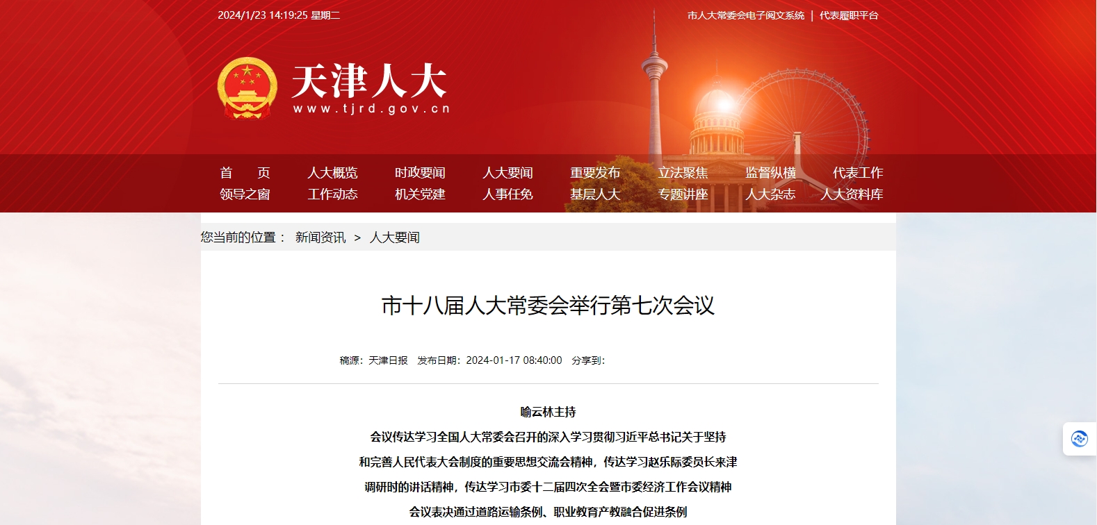 日前,天津市十八屆人大常委會第七次會議表決通過了《天津市職業(yè)教育產(chǎn)教融合促進條例》(下稱《條例》),這是全國首部有關(guān)職業(yè)教育產(chǎn)教融合的地方性法規(guī),自2024年3月1日起施行?!稐l例》的制定和施行,對于全面提高天津市職業(yè)教育質(zhì)量、擴大就業(yè)創(chuàng)業(yè)、推進經(jīng)濟轉(zhuǎn)型升級、實現(xiàn)高質(zhì)量發(fā)展必將產(chǎn)生重要作用。