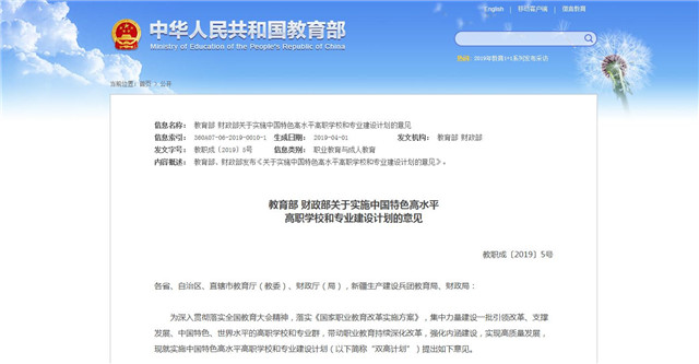 教育部財(cái)政部聯(lián)合發(fā)文 高職迎來(lái)雙高計(jì)劃