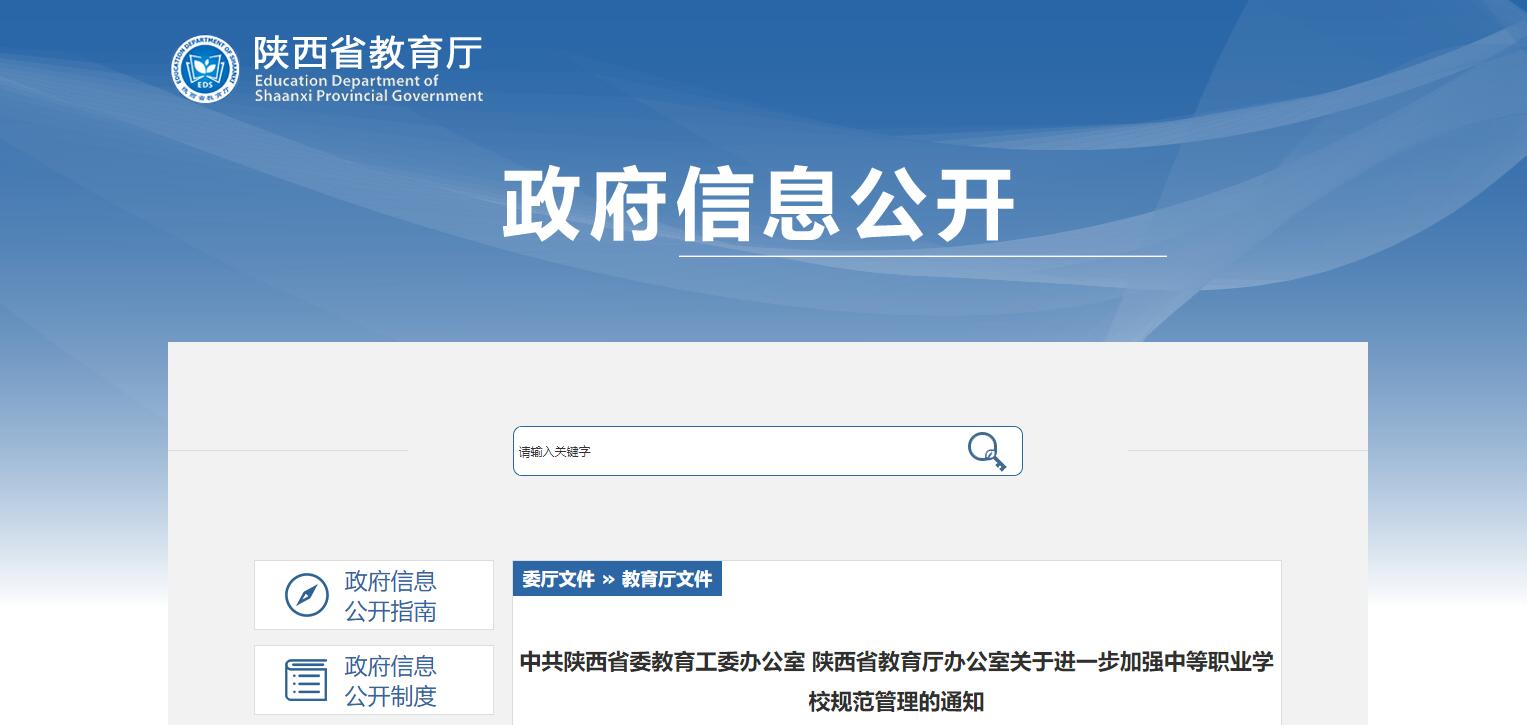 陜西省教育廳發(fā)布《關于進一步加強中等職業(yè)學校規(guī)范管理的通知》