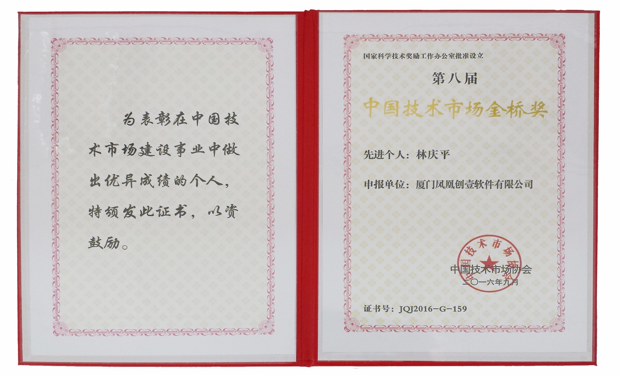 日前,中國技術市場協(xié)會公布了“第八屆中國技術市場金橋獎”獲獎名單,本司(廈門鳳凰創(chuàng)壹軟件有限公司m.iliveindc.com)總經理兼技術總監(jiān)林慶平博士榮膺“第八屆中國技術市場金橋獎金橋獎......
