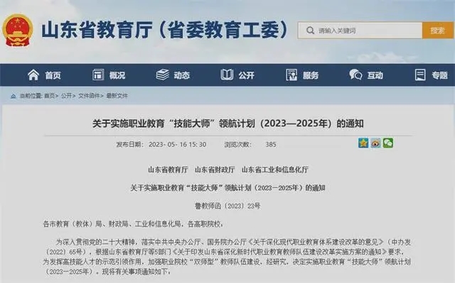山東啟動職業(yè)教育“技能大師”領航計劃!
