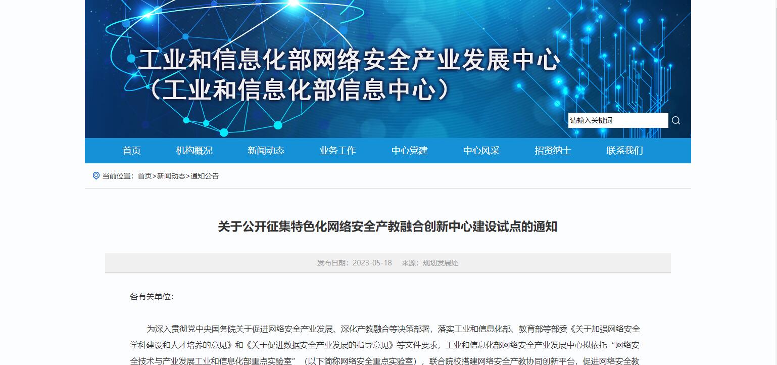 工信部發(fā)布關于公開征集特色化網(wǎng)絡安全產(chǎn)教融合創(chuàng)新中心建設試點的通知