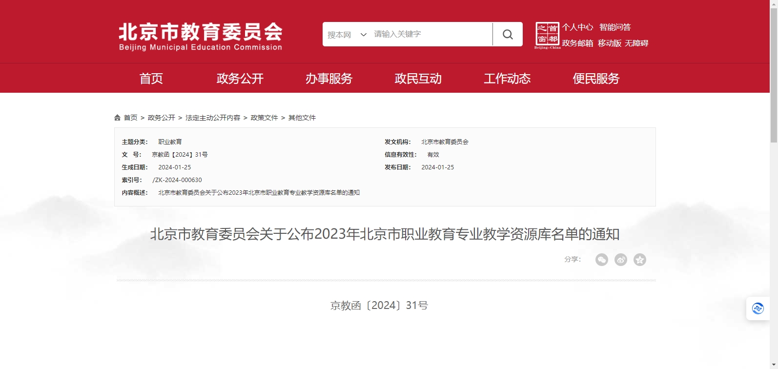 北京公布2023年北京市職業(yè)教育專業(yè)教學資源庫名單