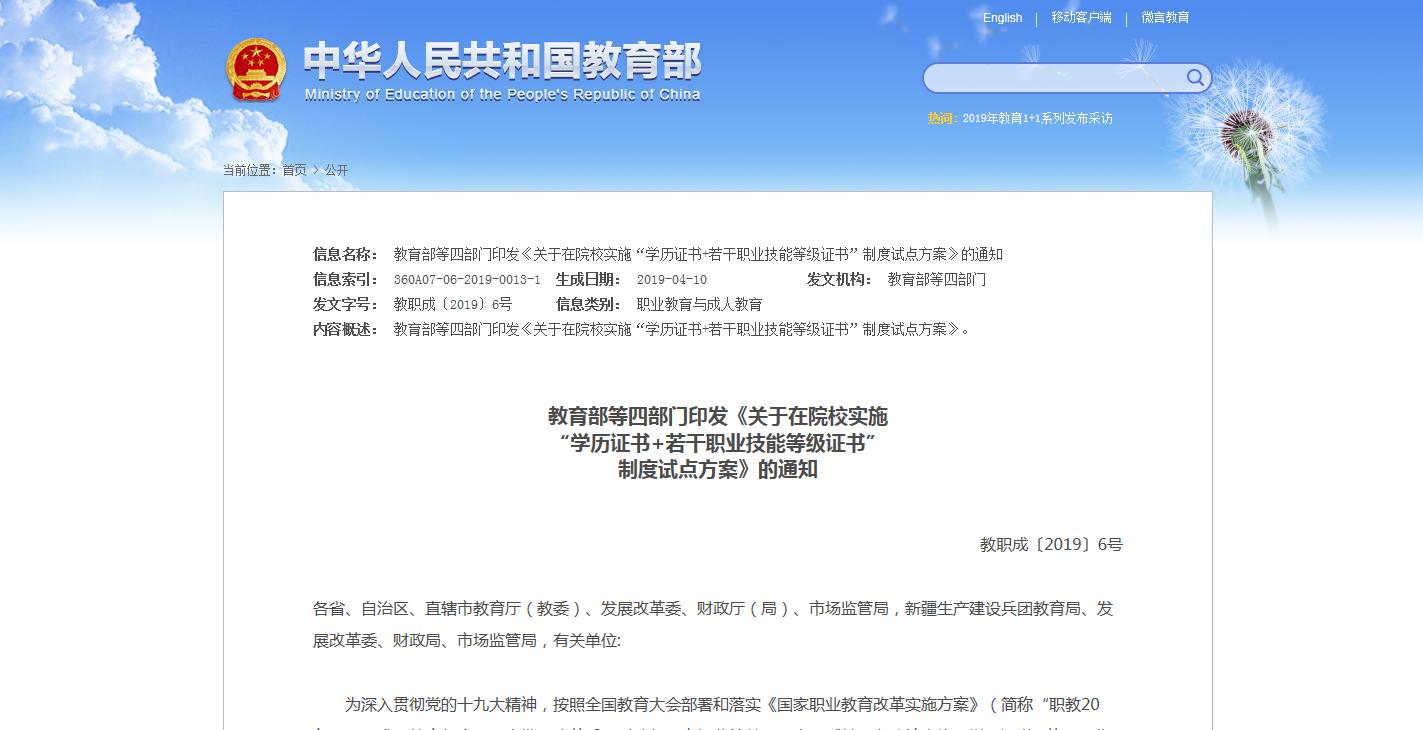 4月12日,教育部職業(yè)教育與成人教育司在教育部官網(wǎng)發(fā)布關于印發(fā)《職業(yè)教育與繼續(xù)教育2019年工作要點》的函,《要點》對完善中等和高等職業(yè)教育和培訓體系,校企合作、產(chǎn)教融合,加快高水平院校和專業(yè)建設等方......
